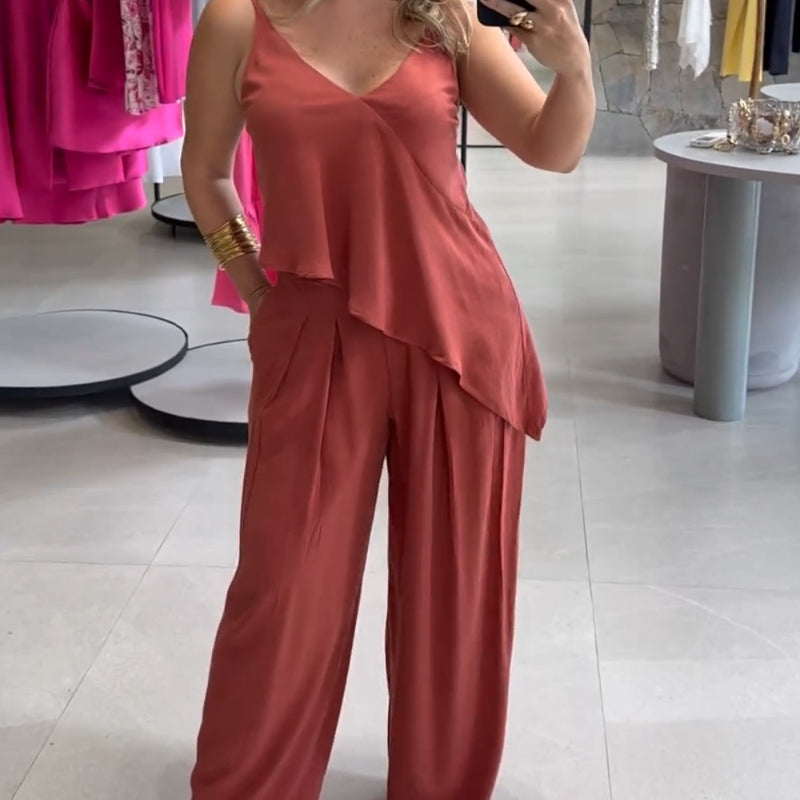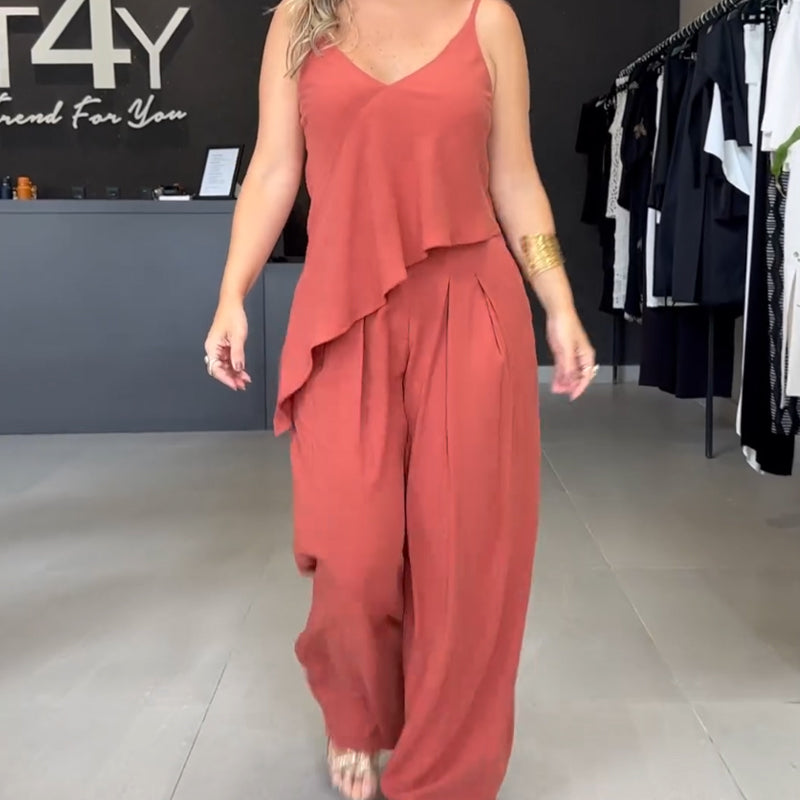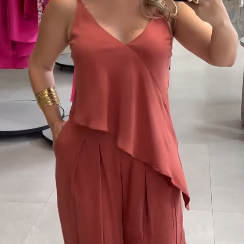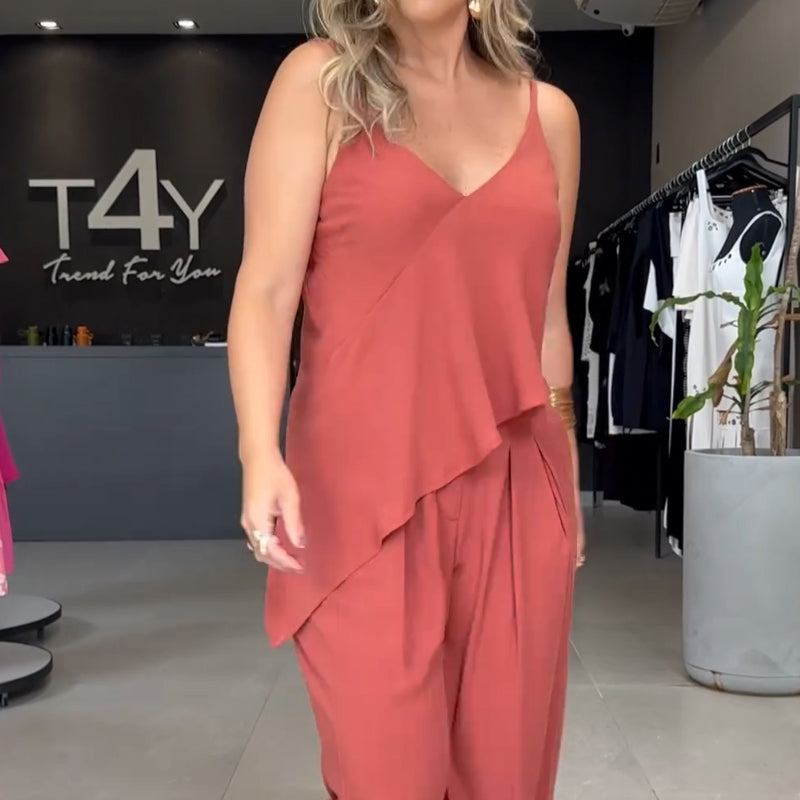 Package Includes:1*Asymmetrical Hem Cami Top and Pants Set
