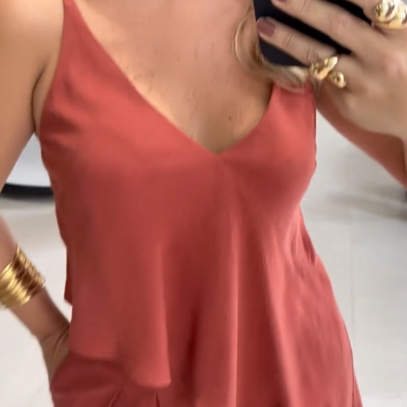 FLATTERING V-NECKLINE – The cami top features a sleek V-neck design that accentuates your neckline, adding a feminine and elegant touch to your look. Perfect for layering or wearing alone.