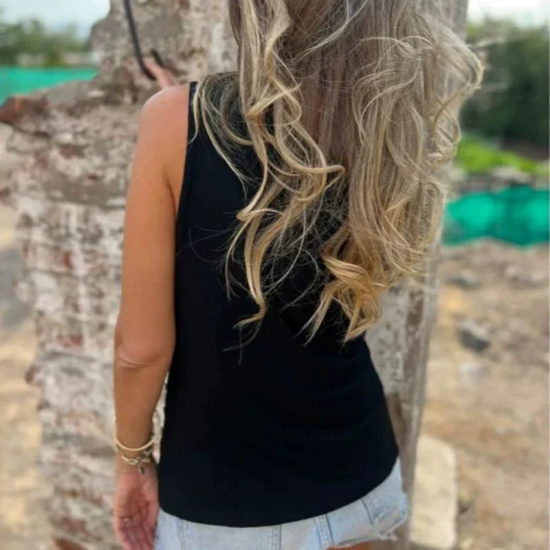 DECORATIVE BUTTONS FOR A TOUCH OF ELEGANCE – Four decorative buttons on the left waist side add an extra flair to the design, elevating this tank top beyond the ordinary. These eye-catching details provide a unique, fashionable twist to a classic design.