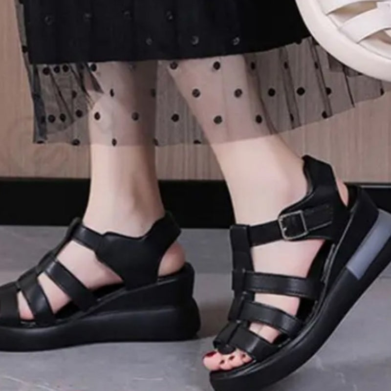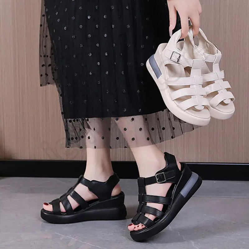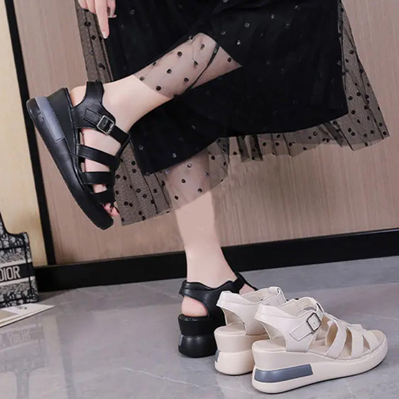 Casual Retro Cutout Open Toe Buckle Sandals