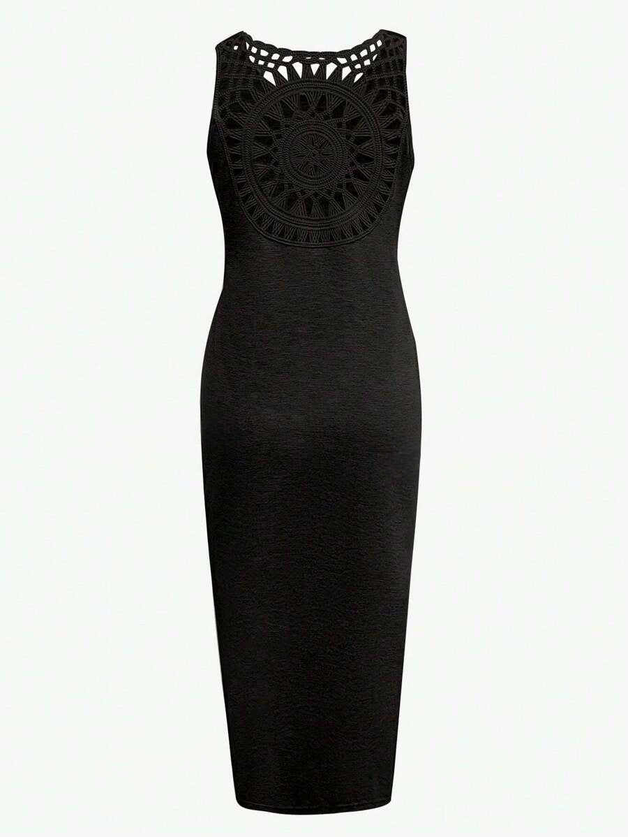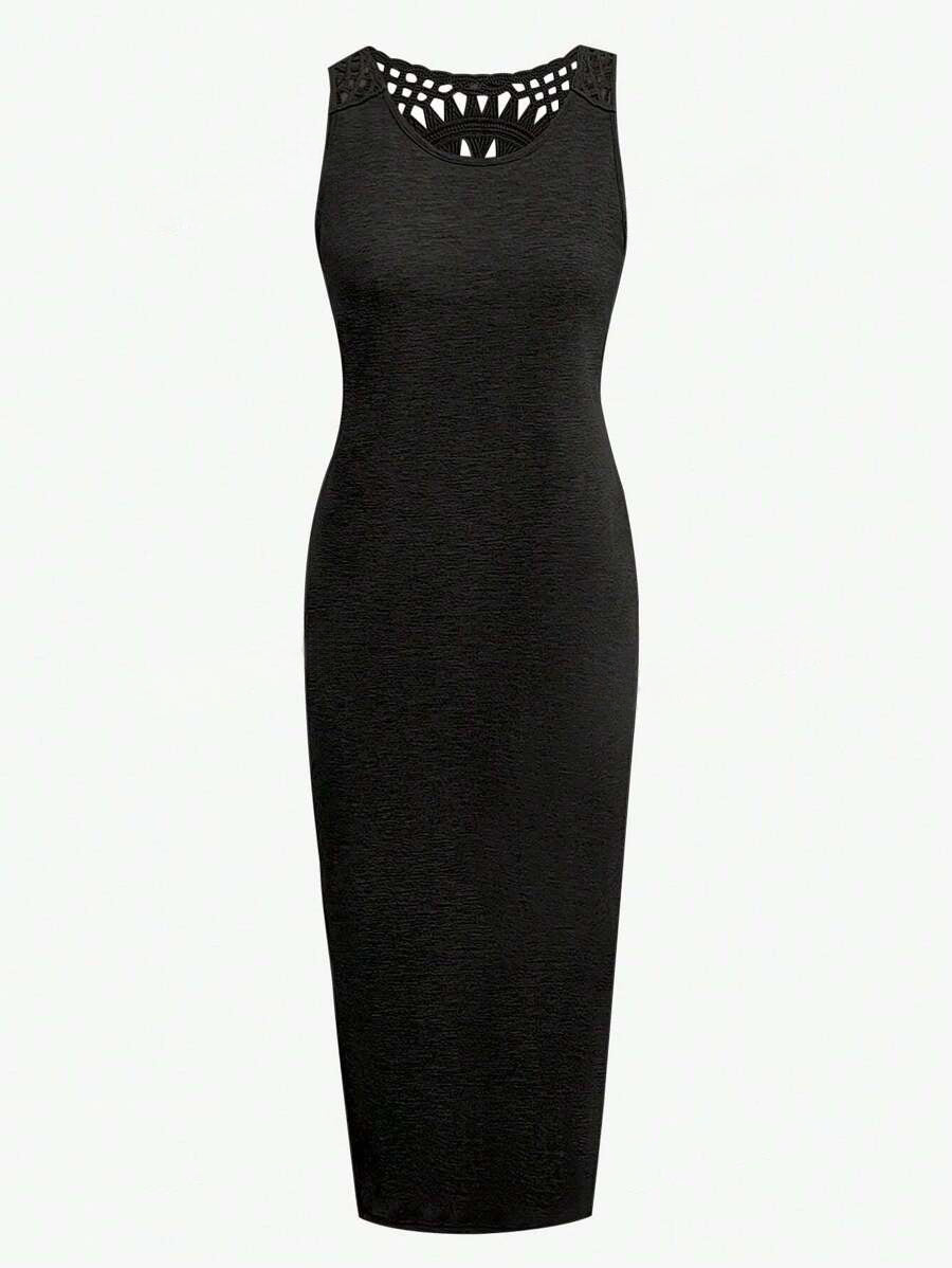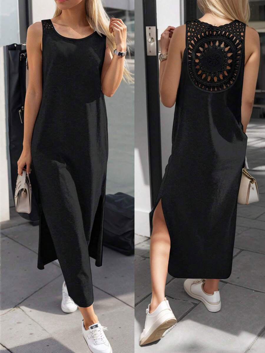 LUNE Summer Casual Solid Color Lace Splicing Sleeveless Side Slit Dress