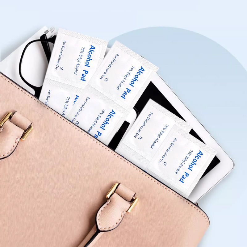 COMPACT SIZE: The alcohol swabs are compact and easy to carry in a handbag or travel bag, allowing you to disinfect surfaces and items if needed.