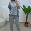 Package Includes: 1 * Women’s Solid Short-Sleeve Tops & Pants Two-Piece Set