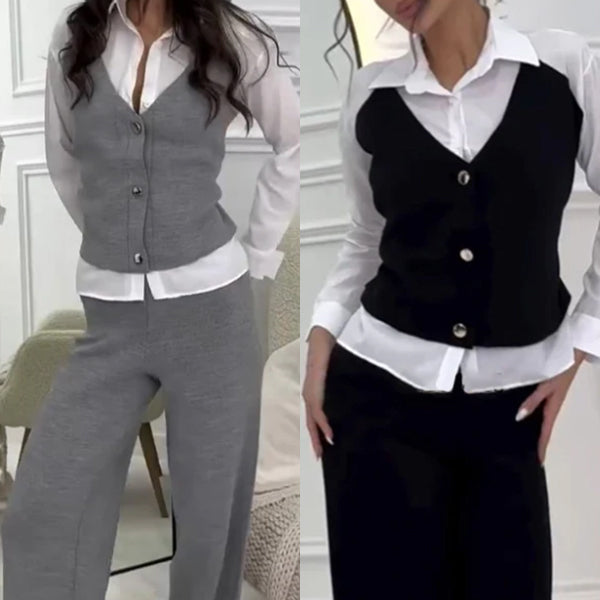 Women's Faux Two-Piece Shirt Vest & Pants Set
