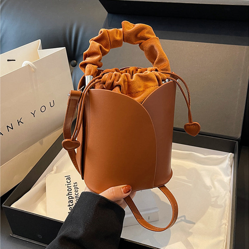 Handmade PU Leather Drawstring Bucket Bag for Women