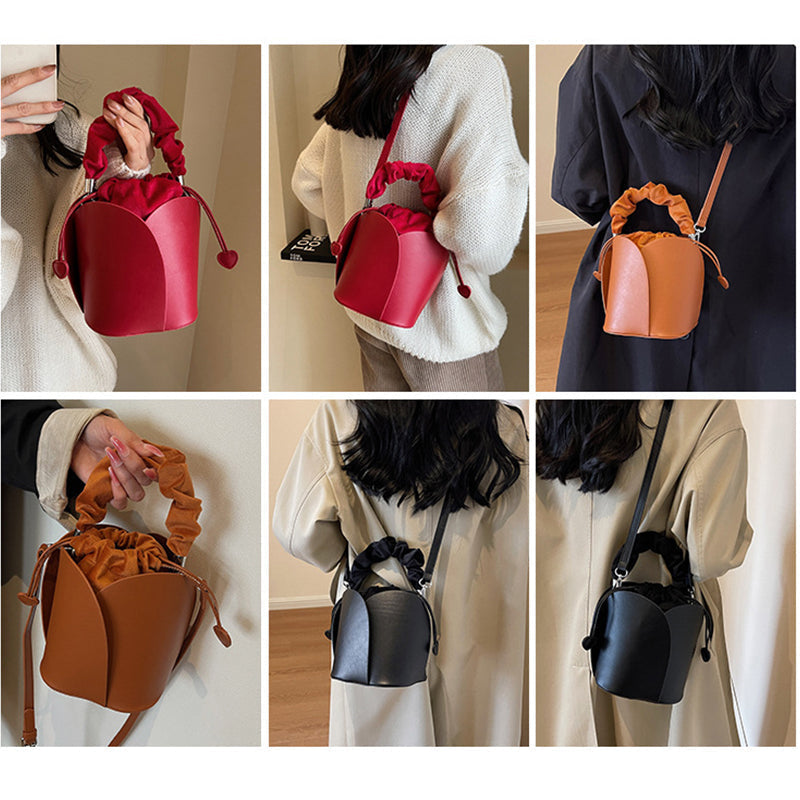 Package Includes: 1 * Handmade PU Leather Drawstring Bucket Bag for Women