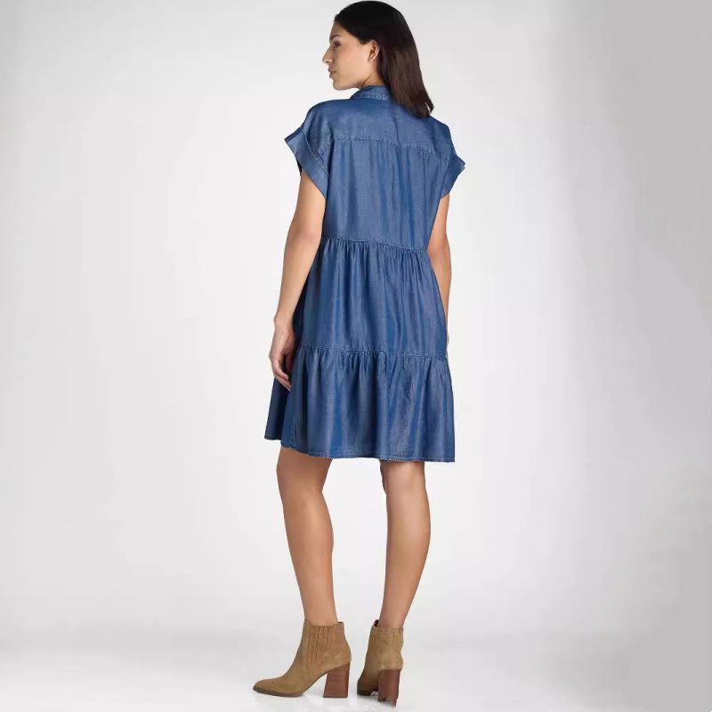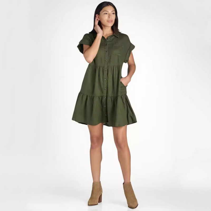 👗Women’s Lapel Short Sleeve Pleated Button-Down Dress