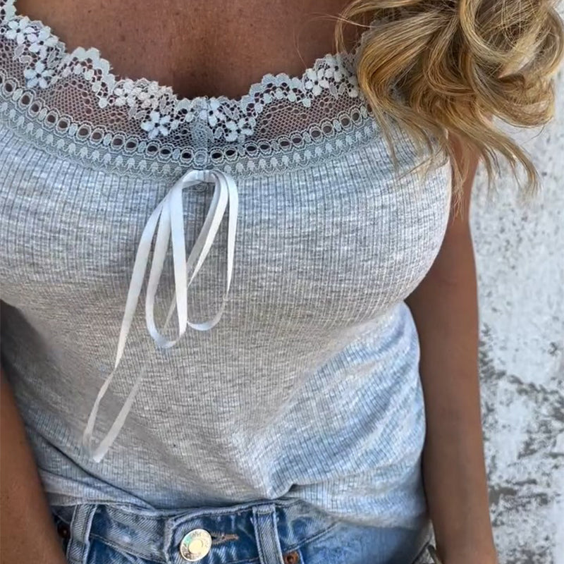 Sexy Square Neck Lace Spaghetti Strap Vest