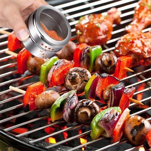 Rotating design, smoothly twist and adjust the tin hole according to your desired amount. Magnetic spice jars can be a great way to solve space problems for your kitchen and BBQ. -
