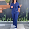 Women's Casual Loose Long Sleeve Shirt High Waist Split Wide Leg Pants Set