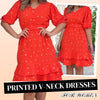 Women's Printed V-Neck Short Sleeve Button Waist Dresses