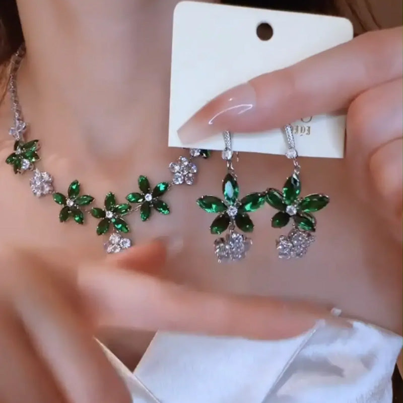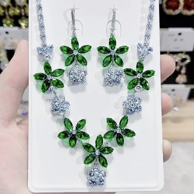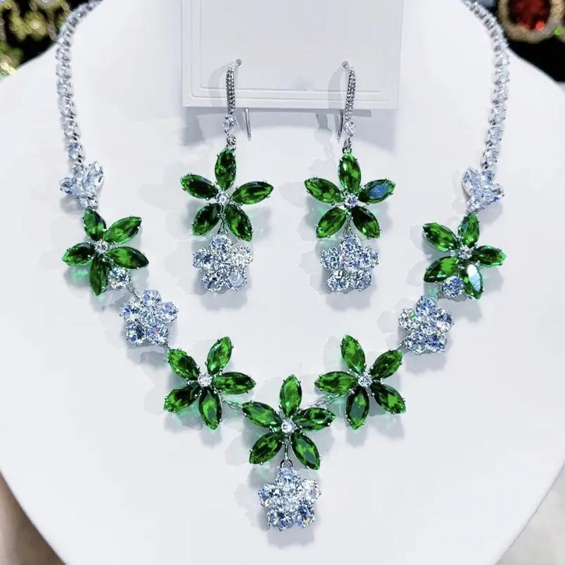 🌿 Spring Specials 🌿Floral Zirconia Earrings Necklace Set