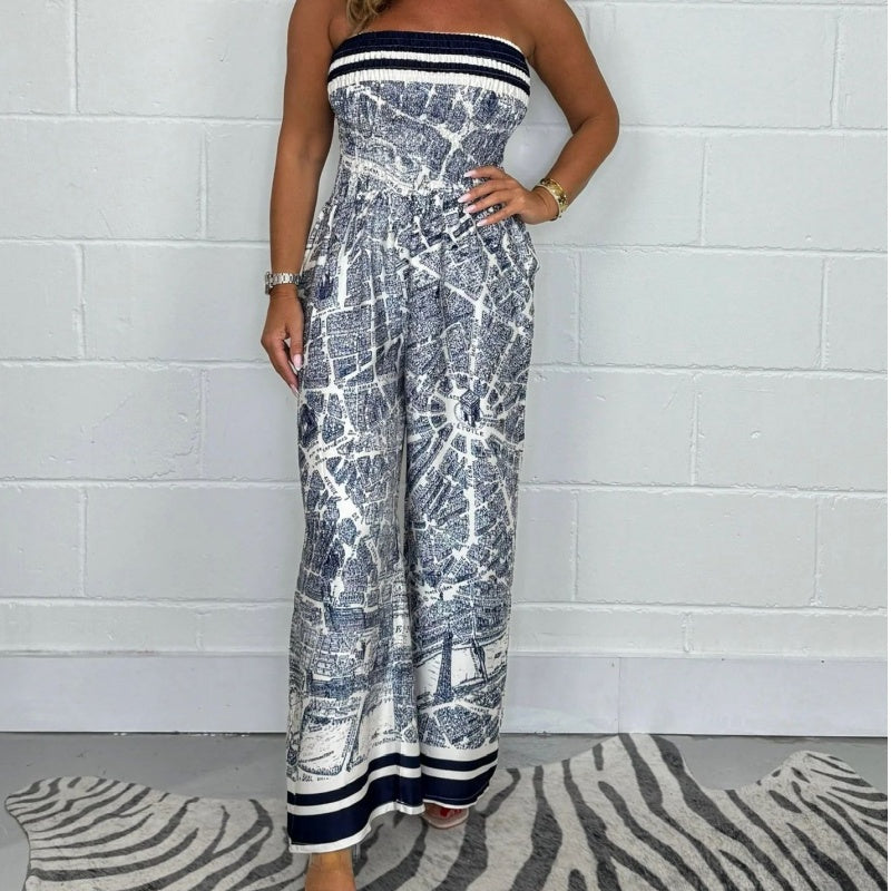 🎁HOT SALE 50% OFF🎁 Strapless Printed Pleated Jumpsuit – Chic, Elegant, and Effortlessly Stylish!